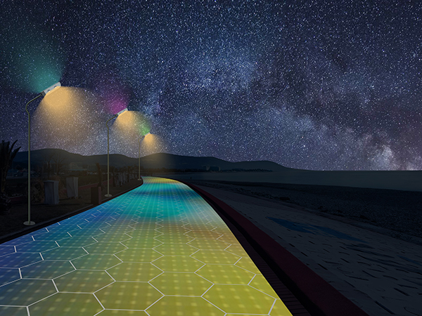 光能寶盒發(fā)電地磚夜間景觀亮化效果