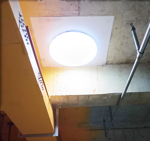 澳斯邦醫療器械一體化項目地下車庫安裝無電照明系統,采取側墻和直上直下兩種相互結合的安裝方式,這樣可以充分利用空間并實現更全面、均勻、立體的照明效果。